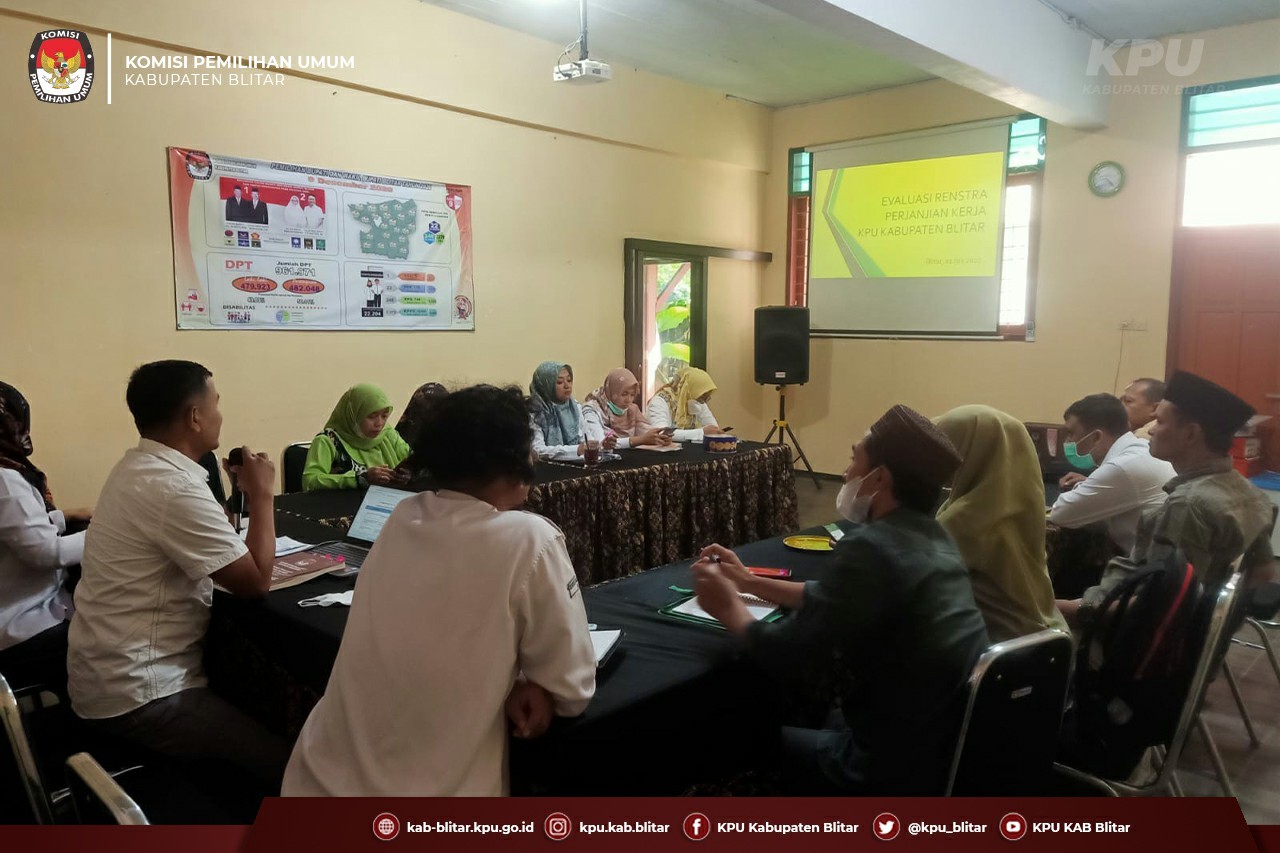 Blitar, kab-blitar.kpu.go.id – KPU Kabupaten Blitar menggelar kegiatan evaluasi Rencana Strategis dan Perjanjian Kinerja, kamis (21/7). Kegiatan yang berlangsung di ruang Media Center KPU Kabupaten Blitar diikuti oleh Ketua KPU Kabupaten Blitar, Hadi Santosa, beserta anggota, Ruli Kustatik, Nikmatus Sholihah, M. Bahaudin, Chepto Rosdyanto, Sekretaris Puspita Palupi, dan Kasubbag serta Staf PNS di lingkungan sekretariat KPU Kabupaten Blitar.
