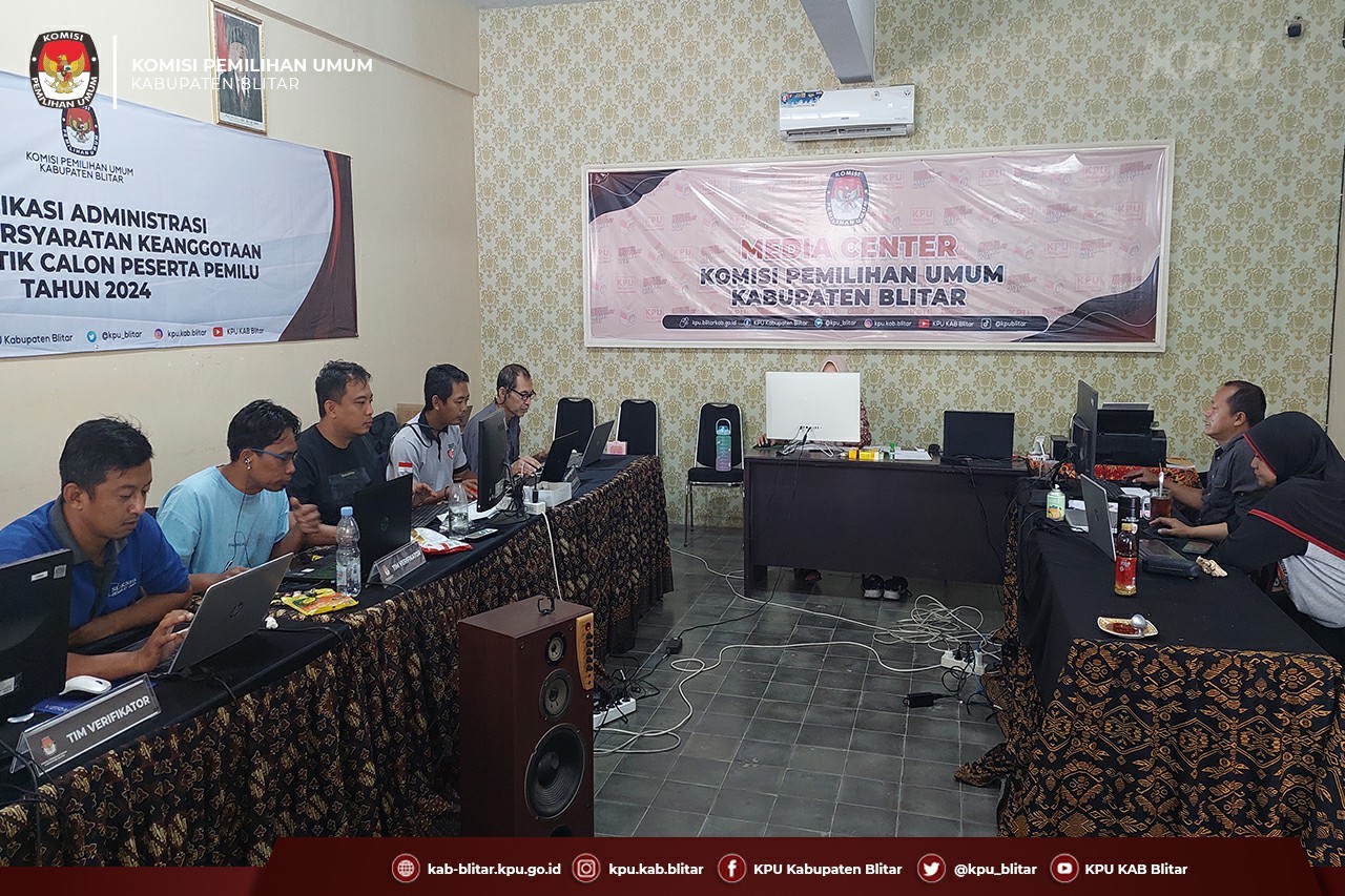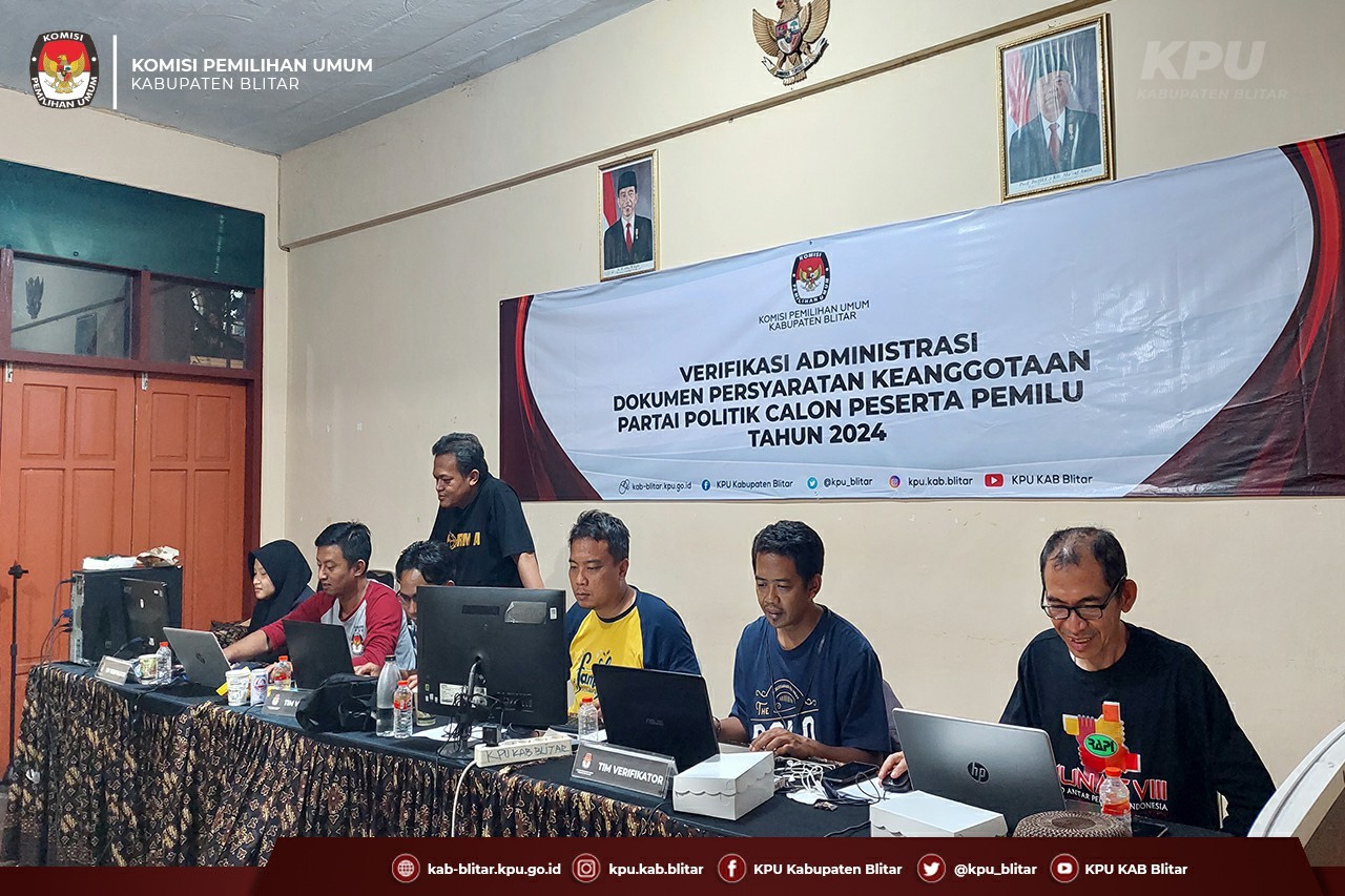 Blitar, kab-blitar.kpu.go.id - KPU Kabupaten Blitar melaksanakan verifikasi administrasi dokumen persyaratan keanggotaan partai politik calon peserta pemilu tahun 2024. Hingga berita ini dibuat, kegiatan verifikasi administrasi masih berlangsung dilaksanakan. Sesuai Surat Keputusan KPU Nomor 260 Tahun 2022, Kegiatan verifikasi administrasi dilaksanakan mulai tanggal 16 hingga 29 Agustus 2022.