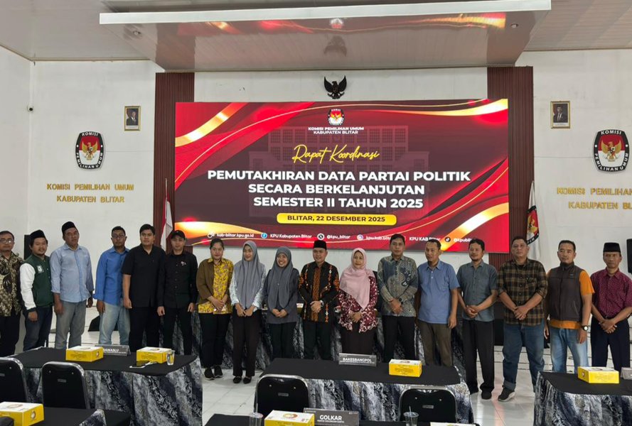 KPU Kabupaten Blitar melakukan Rapat Koordinasi Pemutakhiran Data Partai Politik Berkelanjutan Semester II pada Selasa, 23/12/2025.