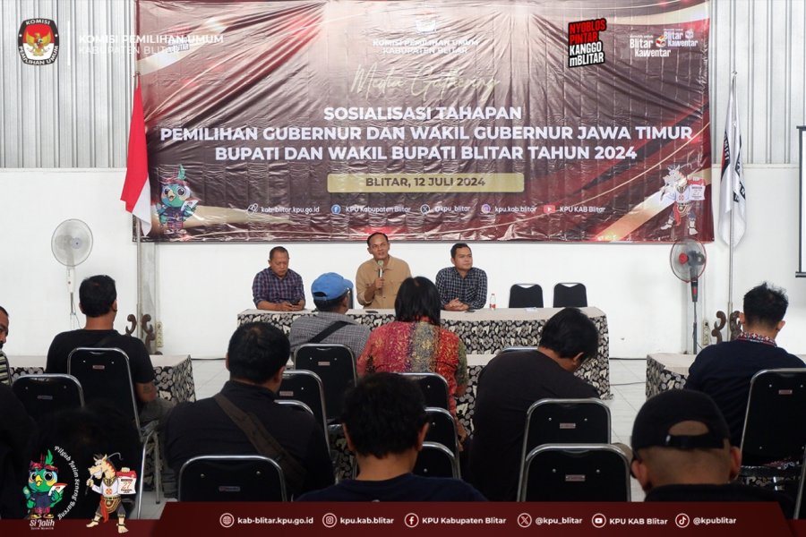 Blitar, kab-blitar.kpu.go.id – KPU Kabupaten Blitar menyelenggarakan Media Gathering dengan agenda Sosialisasi tahapan Pemilihan Gubernur dan Wakil Gubernur Jawa Timur, Bupati dan Wakil Bupati Blitar Tahun 2024, Jumat (12/7). Digelar di Aula Serbaguna KPU Kabupaten Blitar, kegiatan media gathering dihadiri oleh Ketua dan Anggota KPU Kabupaten Blitar serta para awak media di Kabupaten Blitar.