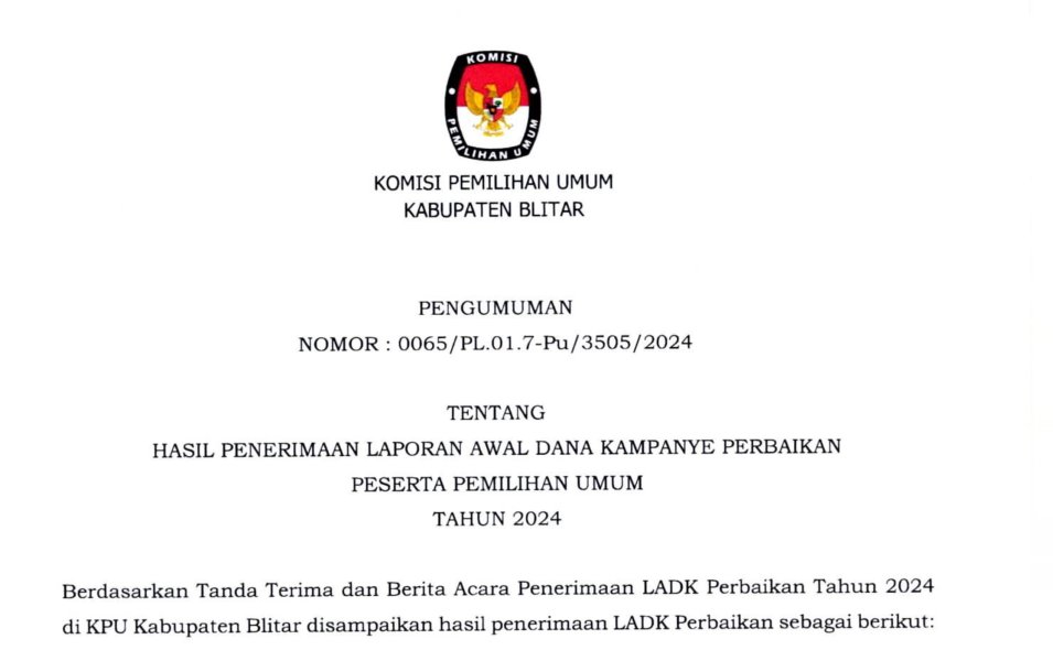 PENGUMUMAN SELEKSI CALON ANGGOTA PPK PILKADA SERENTAK 2024 KABUPATEN BLITAR (Klik Disini)