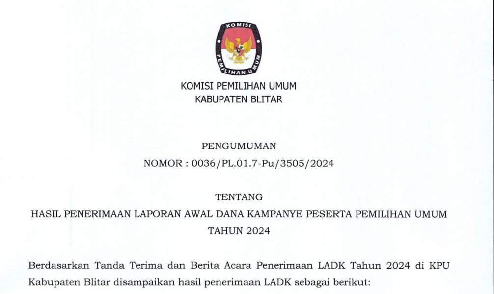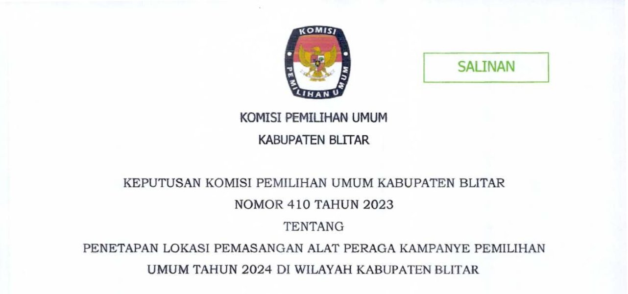 UNTUK PEMILIHAN UMUM TAHUN 2024 SE-KABUPATEN BLITAR